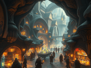 A mysterious and insular kingdom that exists deep beneath the ground on a small central continent. Unlike the Dwarven kingdoms of the world Paz is not a mining or harvesting community, but one of invention and manufacturing. Their goods have reached the entire world, especially their advanced weapons of exceptional quality and sharpness and suits of armor of improved strength.